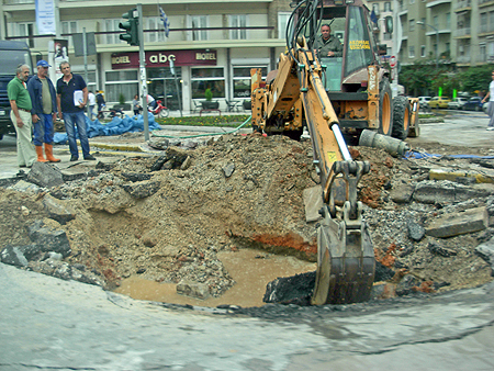 Το αστείο της υπόθεσης είναι ότι η ζημία έχει γίνει μπροστά στο κτίριο της ΕΥΑΘ και στην Βορειοδυτική είσοδο της Έκθεσης, μπροστά στο συντριβάνι όπου συναντιώνται 3 δρόμοι. Εκεί που μαζεύονται τα κανάλια για απαθανατίσουν, όταν γίνονται, τα επεισόδια με τους αναρχικούς.