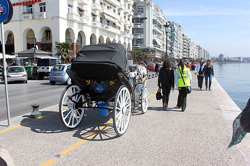 Είπα να κάνω τα στραβά μάτια, μια και είμαι πολλές φορές υπερβολικός, οπότε και συνέχισα την κάθοδό μου προς την παλιά παραλία. Δεν πρόλαβα να κάνω δυο βήματα και να ο επόμενος πειρασμός για βρίσιμο. Ο aμαξάς στην μέση του ποδηλατόδρομου και δίπλα αδιάφορες δυο της δημοτικής αστυνομίας κάνουν την βόλτα τους.