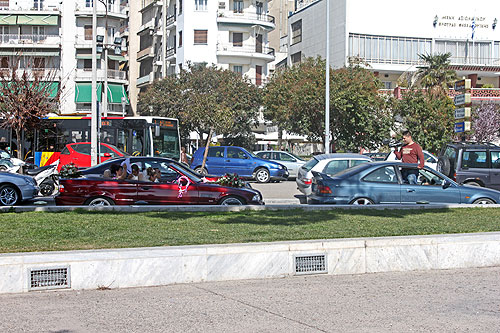 Φυσικά για να τελειώσει η βόλτα με μεγαλοπρέπεια ήταν απαραίτητη και η καθιερωμένη πομπή του γάμου. Μπροστά ο κάμεραμαν, πίσω η νύφη σε γκάμπριο και παραπίσω οι συγγενείς να κορνάρουν και να παίζουν τραγούδια στα ηχοσύνολα των αμαξιών τους.