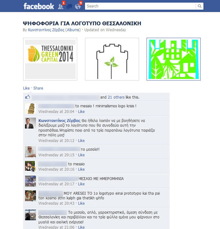 Ας επανέλθουμε λοιπόν στον κ. Ζέρβα. Πριν από λίγο καιρό, στις 5 Οκτωβρίου, ανέβασε 3 φωτογραφίες σε ένα album του facebook με τίτλο “ΨΗΦΟΦΟΡΙΑ ΓΙΑ ΛΟΓΟΤΥΠΟ ΘΕΣΣΑΛΟΝΙΚΗ“. Όσοι από σας δεν έχετε facebook ή δεν θέλετε να μπείτε στο facebook μπορείτε να δείτε ένα screen capture αμέσως παρακάτω.