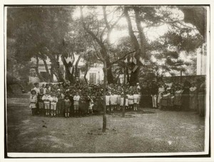 Αριστερά η Σχολή Αλλιάνς, με την μεταπολεμική υπερυψωμένη αυλή από γκαζόν προς τη θάλασσα/πηγές είναι τα Fb groups Aγνωστη Θεσσαλονίκη/Old Photos of Thess.