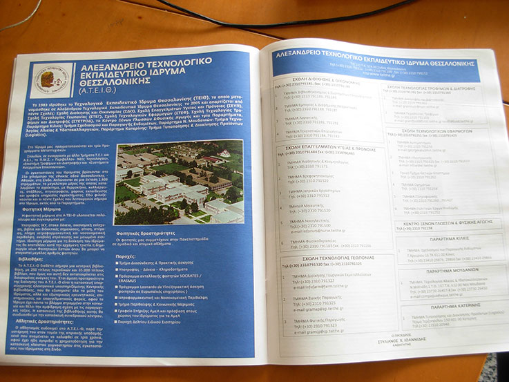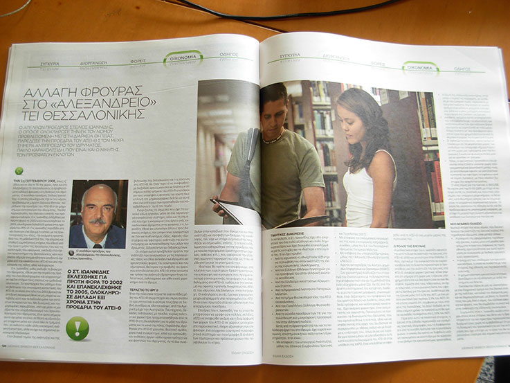 Στις 7/9 λοιπόν τα ΤΕΙ Θεσσαλονίκης είχαν 2σέλιδη διαφήμιση στο ένθετο τη “Μακεδονίας” όπως βλέπεται και στην φωτογραφία. Αμέσως μετά ακολουθούσε το δισέλιδο κομμάτι του προέδρου του ΤΕΙ κ. Ιωαννίδη. Το ίδιο ακριβώς κείμενο φολοξενήθηκε στην “Ελευθεροτυπία” και στο “Ποντίκι”.