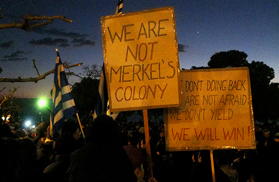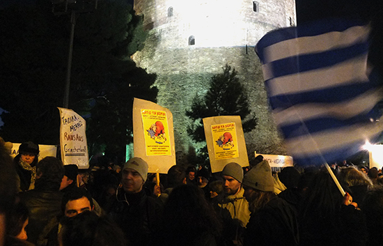 Δεν θέλω να γράψω τίποτε για τη σημερινή συγκέντρωση στο Λευκό Πύργο: για το χαρακτήρα της, αν δηλαδή ήταν φιλοκυβερνητικός ή κατά της λιτότητας ή αντιευρωπαϊκός ή αντιγερμανικός, ούτε για το ντεζαβού από τις πονεμένες και παρεξηγημένες πλατείες των Αγανακτισμένων, ούτε για τις γραφικότητες (ανοησίες, βασικά) που ακούστηκαν από το μικρόφωνο σχετικά με τα κόμματα και τα κομματικά πανό, με το φοβερό επιχείρημα ότι στην εθνική Ελλάδος μπορούν να παίζουν ποδοσφαιριστές όλων των ομάδων, αλλά αν πάνε να παίξουν στην εθνική ομάδα φορώντας φανέλα του ΟΣΦΠ ή του ΠΑΟΚ ή της ομάδας του ο καθένας, θα τους διώξουν με τις κλωτσιές, ούτε για την σχεδόν γκροτέσκα απαγγελία του «Θα ανατέλλω» των Τρυπών, ούτε για τις ελληνικές σημαίες που με περιτριγυρίζανε, ούτε θέλω να αναρωτηθώ τι ζητούσε το σημερινό συλλαλητήριο, ούτε για το συγκεχυμένο των αιτηματων (όπου υπήρχαν αιτήματα τέλος πάντων). Θέλω μόνο να πω ότι προτιμώ να συμμετέχω με τις ενστάσεις μου σε τέτοιου είδους πρωτοβουλίες παρά να μένω μακριά από το μοναδικό σημείο πολιτικής δράσης που για μένα έχει αξία: κι αυτό είναι ο δρομος. Ακολουθούν πολλές (πάρα πολλές) φωτογραφίες που τράβηξε ο Μήτσος ο Γαλατάς. Κι ο καθείς ας βγάλει τα συμπεράσματά του – άλλωστε οι περισσσότεροι έχουν βγάλει τα συμπεράσματά τους, θετικά ή αρνητικά, για την κυβέρνηση προτού καν αυτή να προχωρήσει σε δράση.