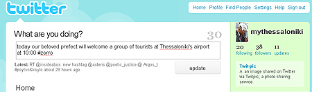 Μάλιστα και αυτό θα γίνει μέσω του twitter όπου έχετε 38 followers εκ των οποίων τουλάχιστον τρεις που γνωρίζω (Αστέρης, Άνεμος, Μπερεδήμας) δεν χρειάζονται διαφήμιση για να έρθουν στην πόλη…